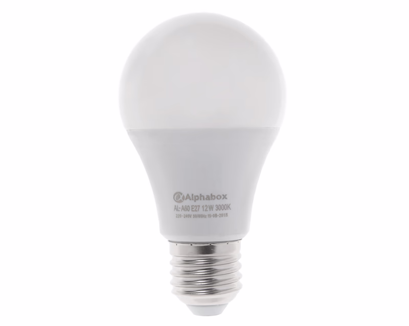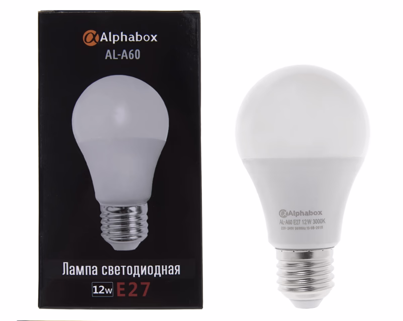 Лампа светодиодная Alphabox AL-A60 E27 12W 3000K, отличная замена уже устаревшей лампе накаливания в 90 Вт. Энергосберегающий источник света обеспечивает высокий и равномерно распределенный световой поток в доме. Современная лампочка имеет мощность 12 Вт с теплым и белым домашним светом в 3000K. Благодаря цоколю стандарта E27 LED лампочка подходит практически ко всем видам светильников: люстр, бра, торшеров. Бытовая светодиодная лампа для дома энергоэкономична и долговечна, ведь ее работы достаточно до 30 000 часов активной работы, следовательно, такой срок эксплуатации сэкономит ваши средства.