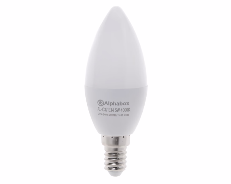 Лампа светодиодная Alphabox AL-C37 E14 5W 4000K – заменит устаревшую лампу накаливания и обеспечит полноценное и яркое освещение жилого, офисного или складского помещения. LED лампочка имеет комфортное и качественное немерцающее свечение. В производстве ламп используется устойчивый от возгорания пластик и алюминий.