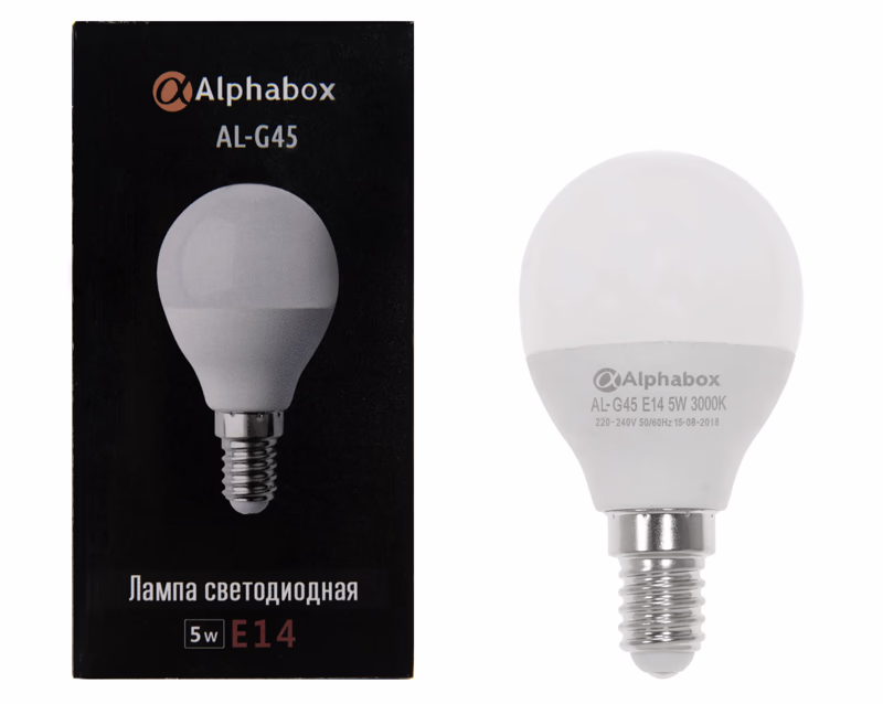 Качественная и надежная светодиодная лампа Alphabox AL-G45 E14 5W 3000K с мощностью в 5 Вт и экономией до 90% электроэнергии, прослужив при этом сроком в более 30000 часов. Цоколь энергосберегающего источника света стандарта E14, что отлично сочетается с большинством люстр, бра, торшеров.