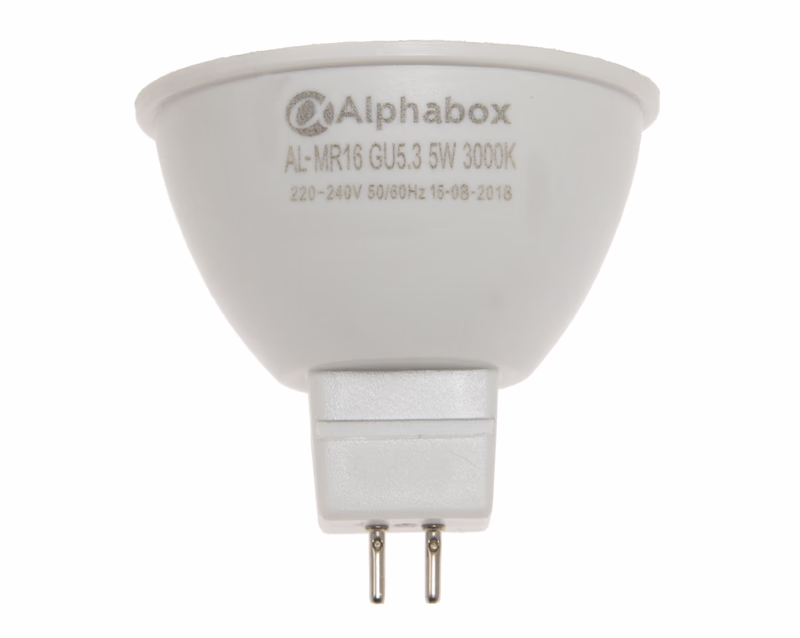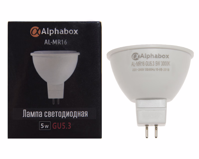 Лампа светодиодная Alphabox AL-MR16 5W 3000K современная замена галогенной лампы. Данная модель экономична и создает комфортный белый свет. LED лампочка безопасна для здоровья человека, так как в ней нет ртути и имеет современную систему теплоотвода. Кроме этого для ее работы понадобится незначительное количество электроэнергии в отличии от лампы накаливания.