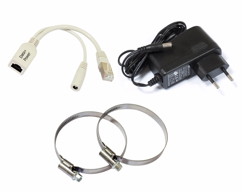 В комплекте: один SEXTANT G-5HPnD, GPoE инжектор, 24V адаптер питания, кронштейн крепления, металлические монтажные хомуты.