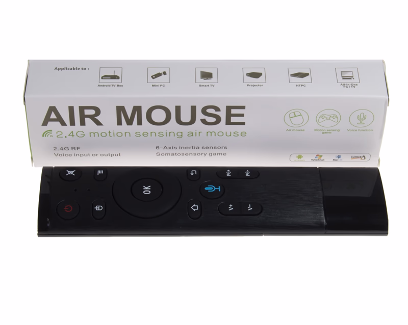 Пульт дистанционного управления Q5 аэромышь - по своему функционалу напоминает компьютерную мышь, работает за счет встроенного гироскопа, что намного удобнее при использовании его с тв-боксами и телевизорами. Данным пультом намного легче управлять, чем стандартным, управление происходит по принципу лазерной указки. Встроенный микрофон - для использования голосового поиска и управления в различных устройствах.Иструкция по обучению пульта Q5 (программирование кнопки питания)