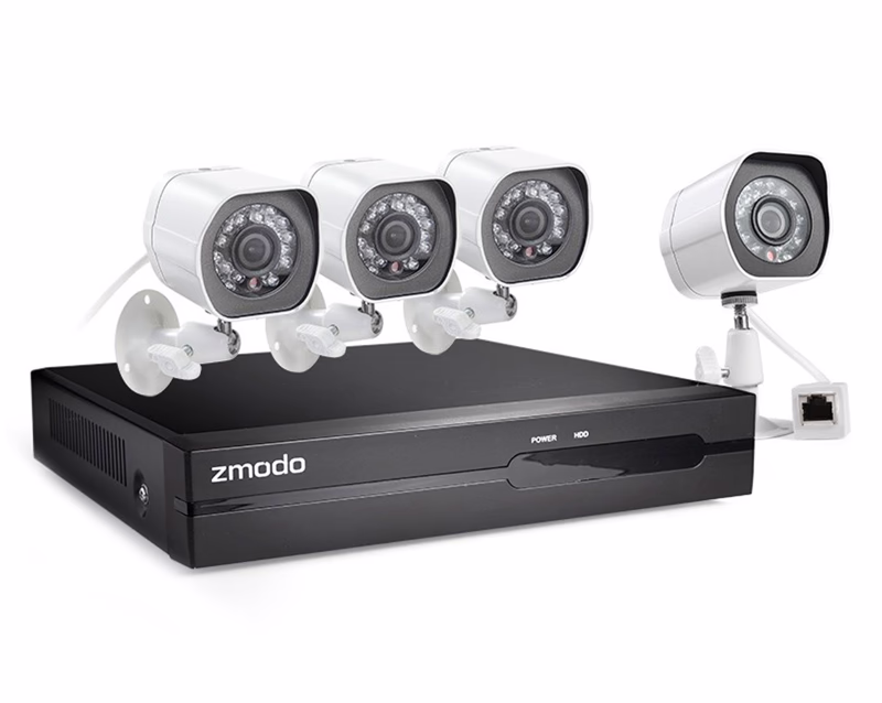 Этот набор состоит из сетевого видео регистратора и 4 наружных камер наблюдения, которые очень быстро настроить и включить в работу.