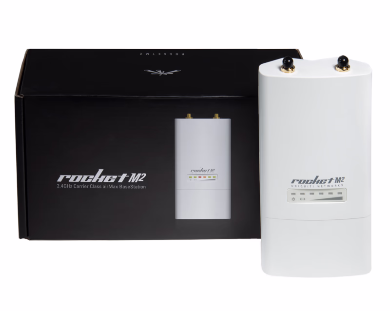 Ubiquiti Rocket M2 является стандартом де-факто для построения надежных и высокоскоростных точек доступа. Используемая фирменная технология TDMA позволяет избежать основного недостатка всех Wi-Fi устройств других производителей — коллизий. Обладает устройство современной MIMO технологией, благодаря которой вы сможете избежать большинство проблем, связанных с сигналом. Wi-Fi точка доступа Ubiquiti Rocket M2 предназначена для обеспечения связью небольшого офиса, городского участка, частного сектора.Поддержка стандартов WiFi 802 11 b/g/n, а также поллингового протокола AirMax собственной разработки в режиме антенной конфигурации MIMO 2×2 обеспечивает скорость беспроводного соединения до 300 мб/сек. Как и другие модели серии, Rocket M2 работает под управлением операционной системы AirOs. Обладая интуитивно понятным интерфейсом, AirOS 7 делает процесс настройки и интеграции устройства в существующую сеть быстрым и удобным, сводя к минимуму затраты времени на подготовку к работе.